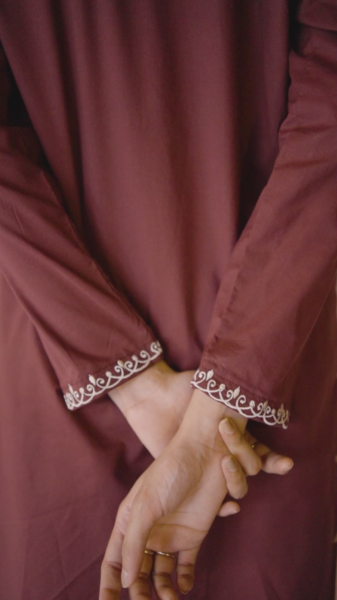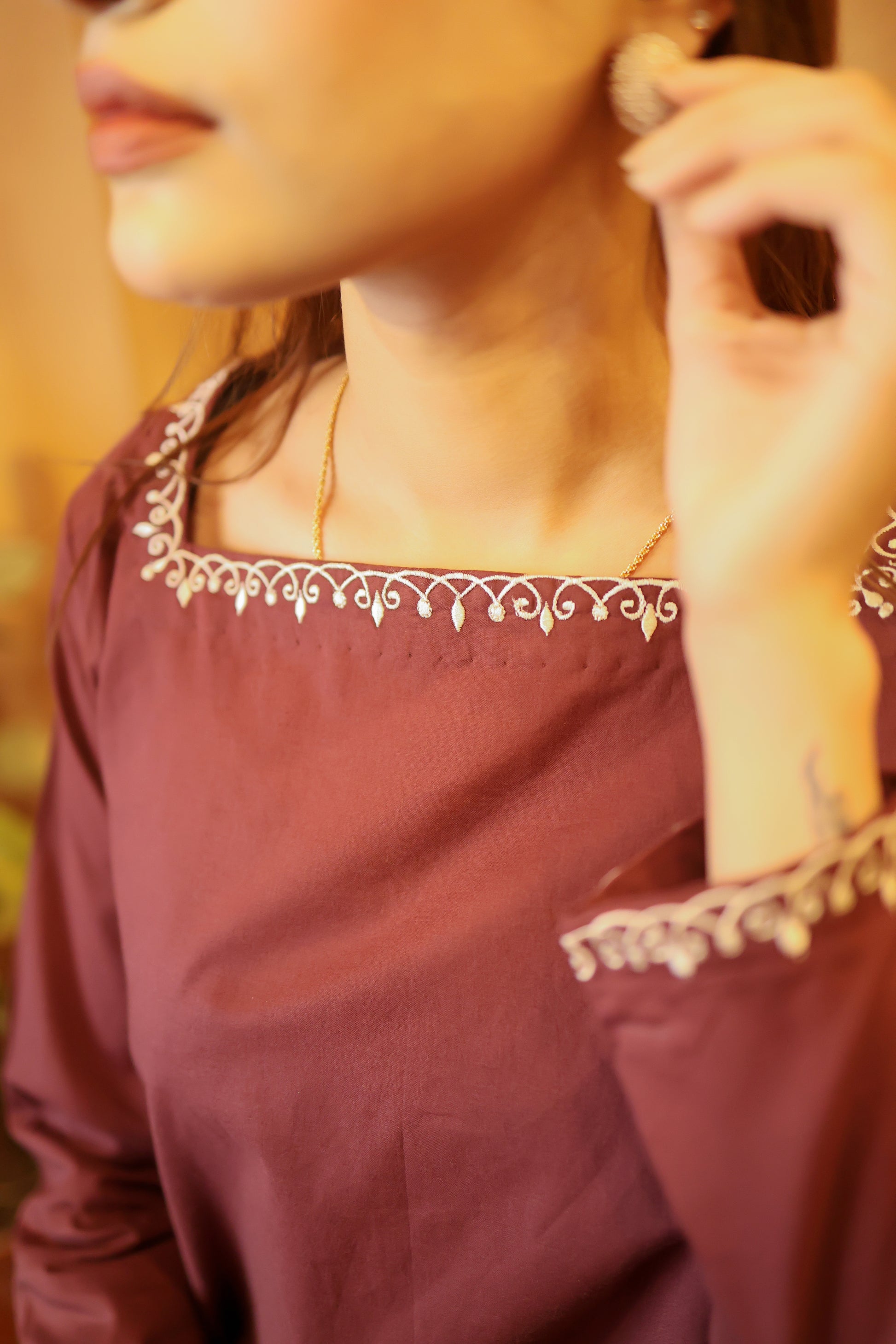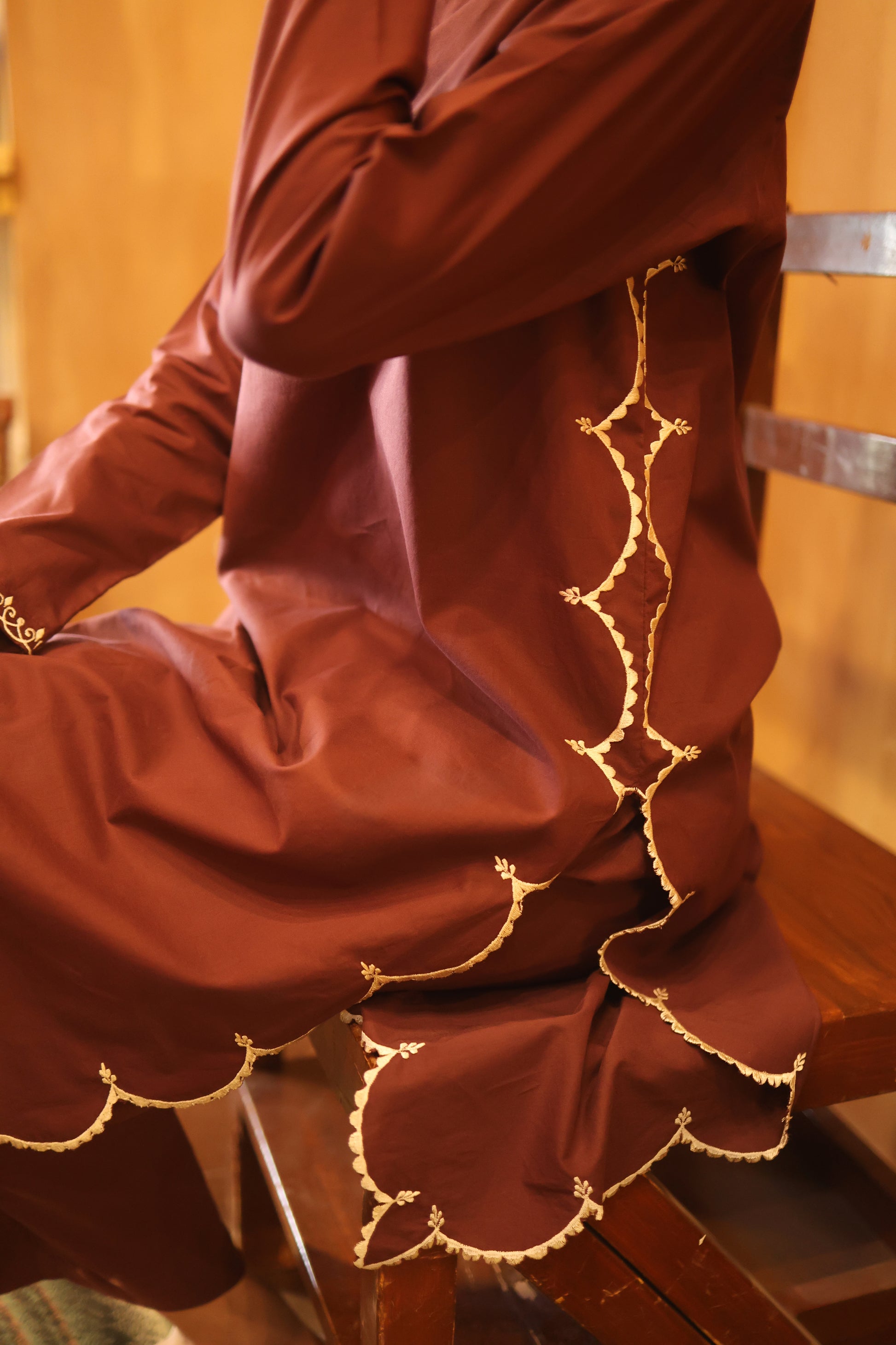 This breezy lawn ensemble is elevated with delicate beige embroidery, tracing graceful scallops and intricate motifs. A statement of timeless charm and refined minimalism – perfect for sun-drenched days and warm evening gatherings.